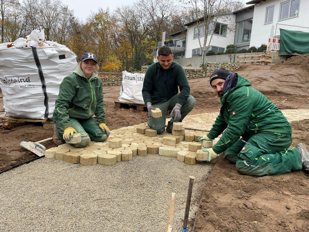 Wenn drei Leute im Dreck knien und trotzdem grinsen, dann ist meist Boellert Garten- und Landschaftsbau am Werk.