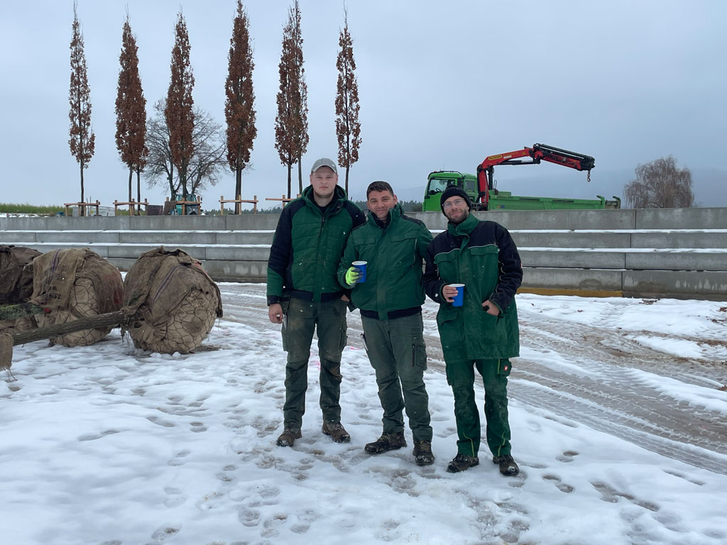 Ausgerechnet beim ersten Schnee mussten im Dezember beim Europatempel (#Glyptothek) 47 Säulen-Eichen gepflanzt werden.